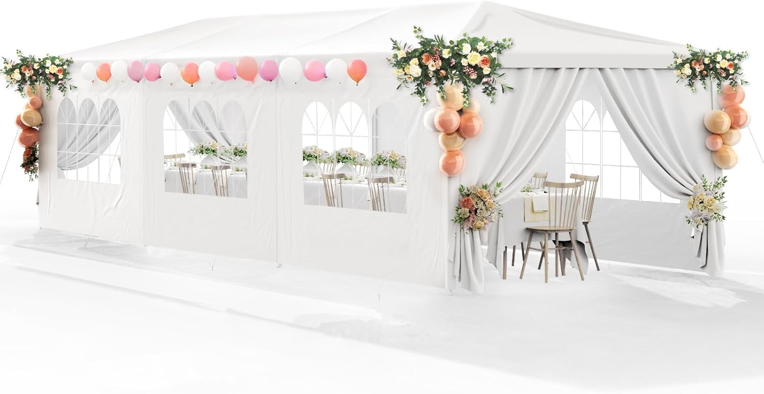Party Tent 10×30 Outdoor Wedding White Tents for Parties, Heavy Duty Gazebo Event Tents for Parties Canopy Shelter with 8 Removable Sidewalls Waterproof Party Wedding BBQ Events Tent for Parties