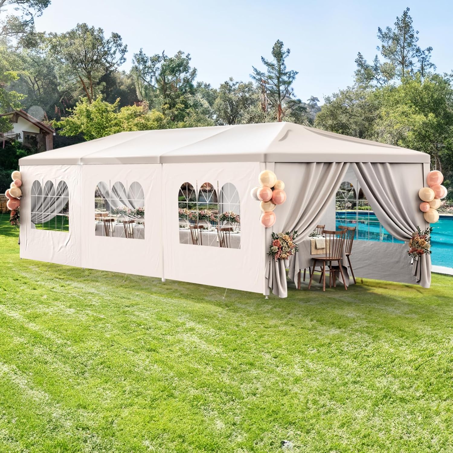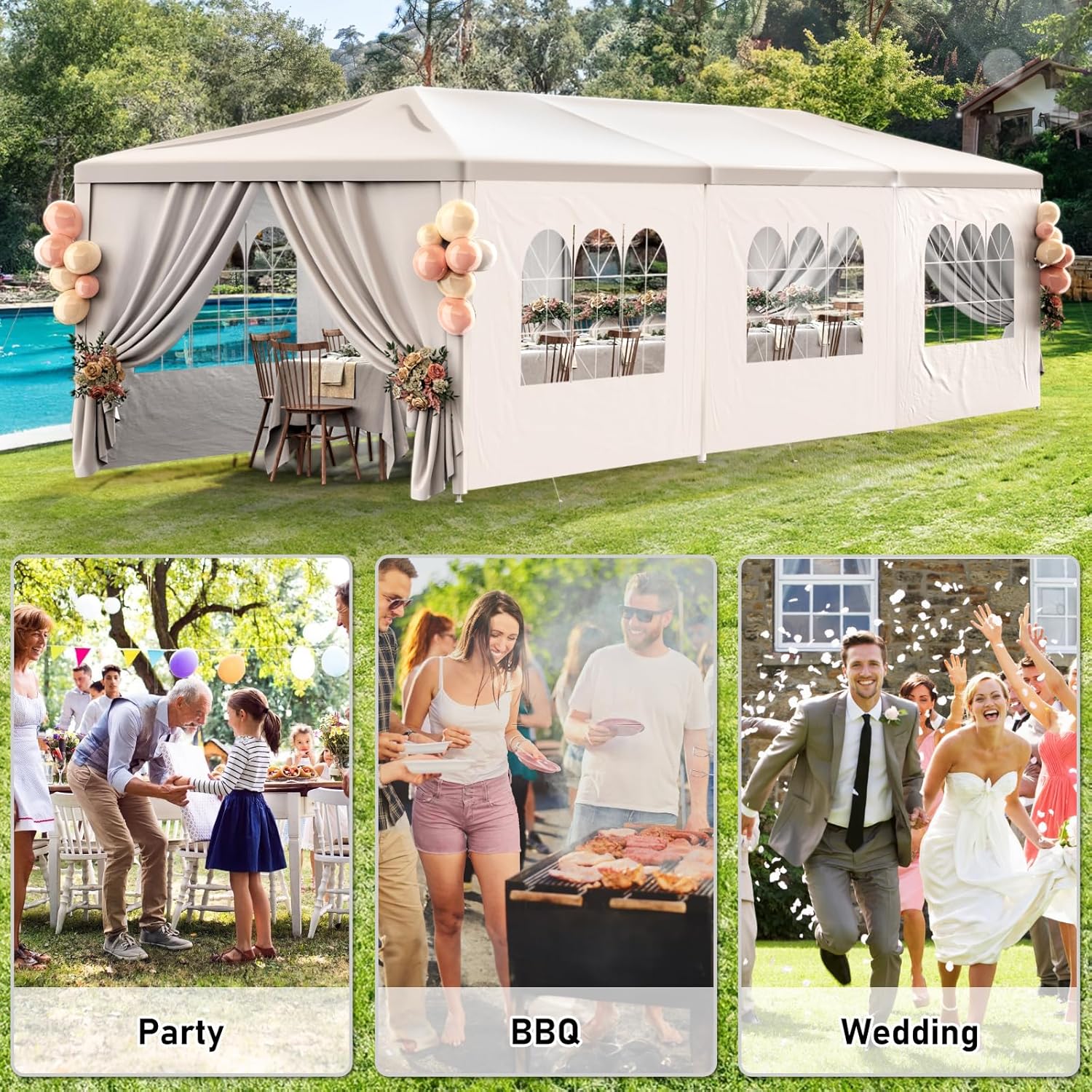 Easy to set up and take down, this party tent is designed for quick assembly, allowing you to focus on creating memorable moments with your guests. Whether you’re planning a wedding, birthday party, or outdoor BBQ, this versatile canopy shelter is the perfect choice for all your party needs.